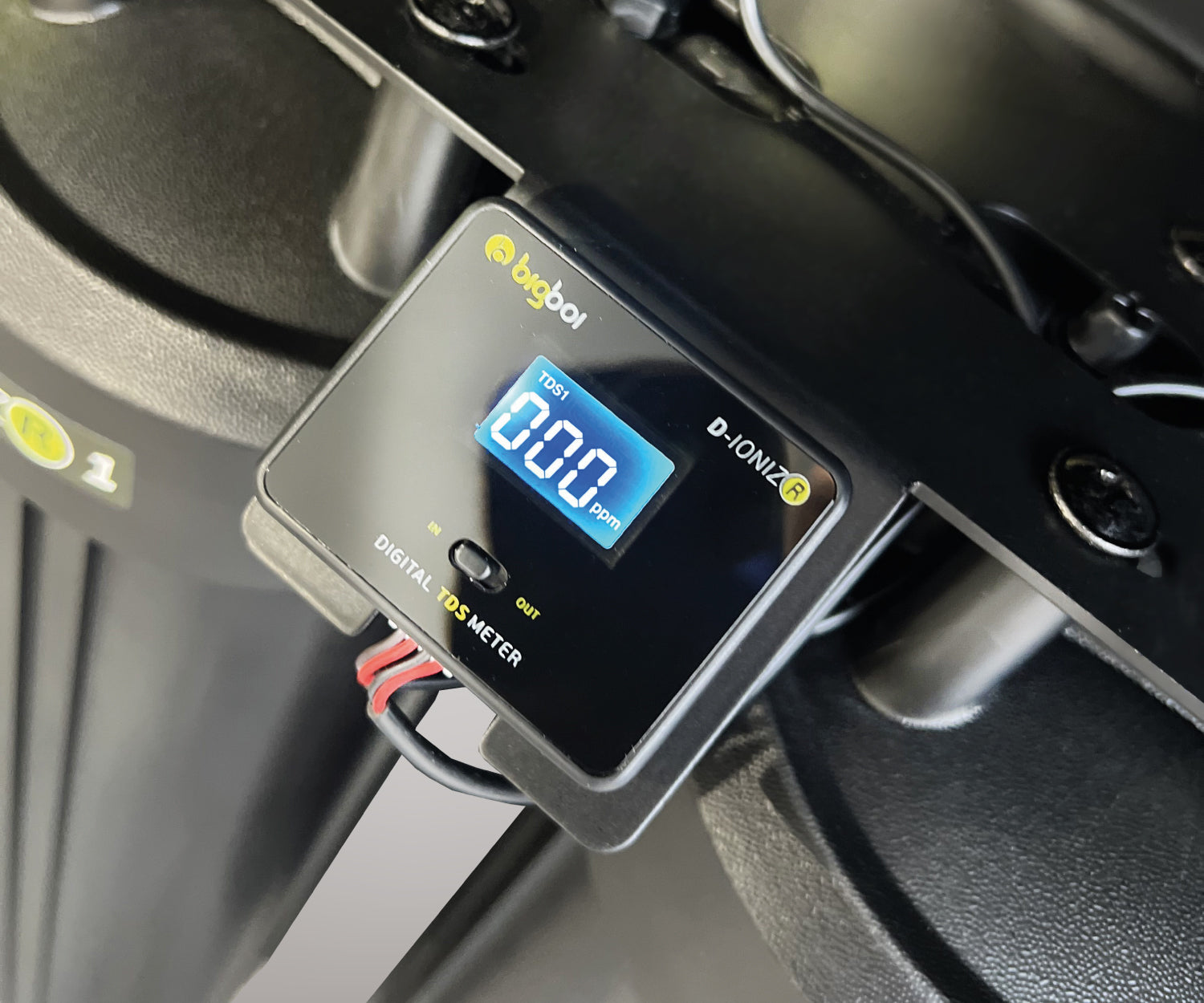 The TDS (Total Dissolved Solids) meter measures the incoming and outgoing water purity. It ensures you know when the cartridge needs replacing by displaying when water purity is no longer at 0 PPM.