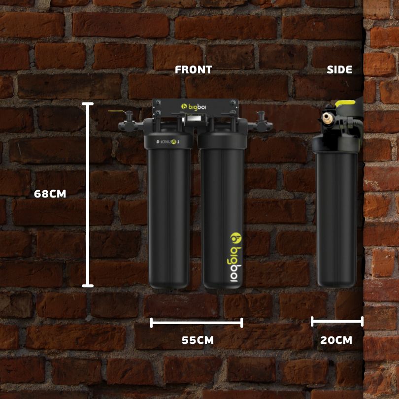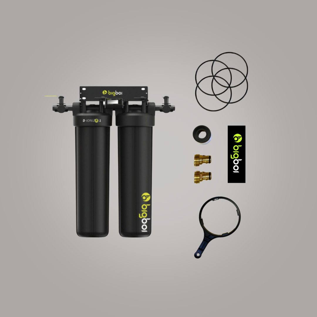 Goodbye Water Spots! The D-IONIZR water filtration system has been designed to make washing simple. The bigboi D-IONIZR system allows you to wash your car without the inconvenience of water spotting during the washing / drying process. Let's breakdown how the unit works.