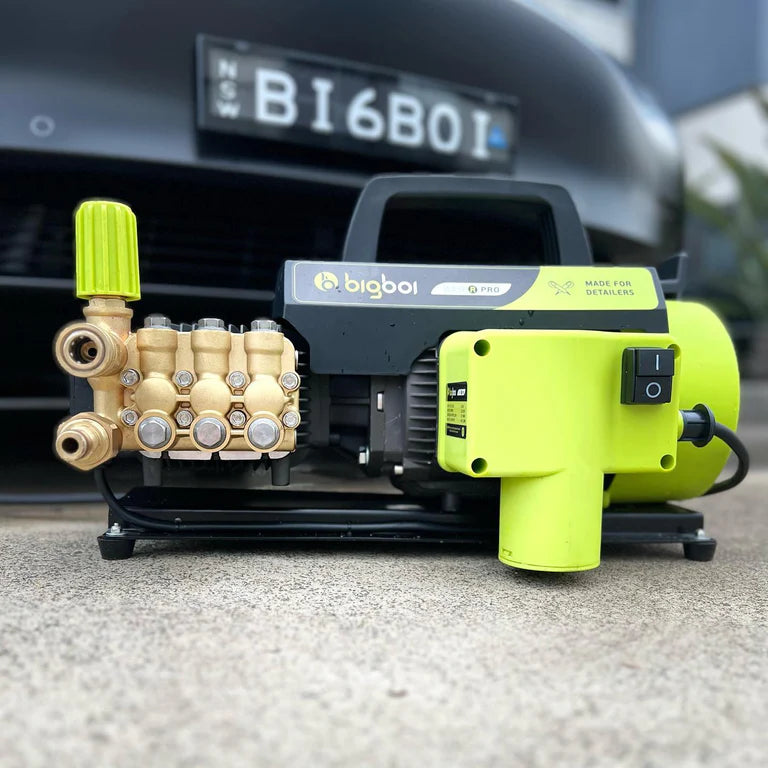 Introducing the new & improved bigboi WASHR PRO MKII, a professional-grade pressure washer designed for the fussiest detailers. Equipped with advanced technology, including a Total Stop System (TSS), Brushless Induction Technology, and a commercial duty Italian designed Triplex forged brass pump head, this washer delivers a perfect combination of PSI and water flow rate. With a maximum pressure of 1850PSI and a flow rate of 9.5LPM, the WASHR PRO ensures an efficient and quiet operation, making it an indispensable tool for professional car care.